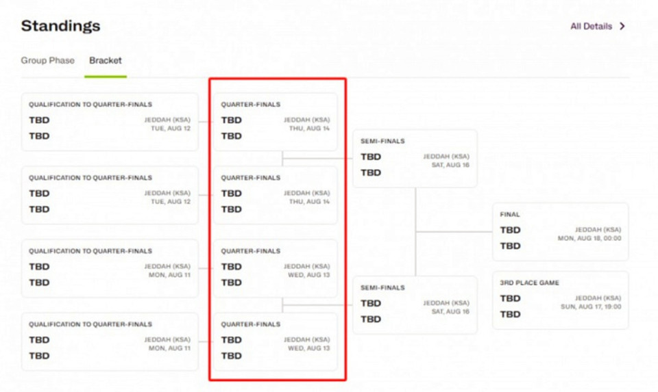 由于三战全胜提前锁定前八位置,中国男篮将获得至少3天休息时间,将在1/4决赛对阵A组第二和B组第三之间的胜者。